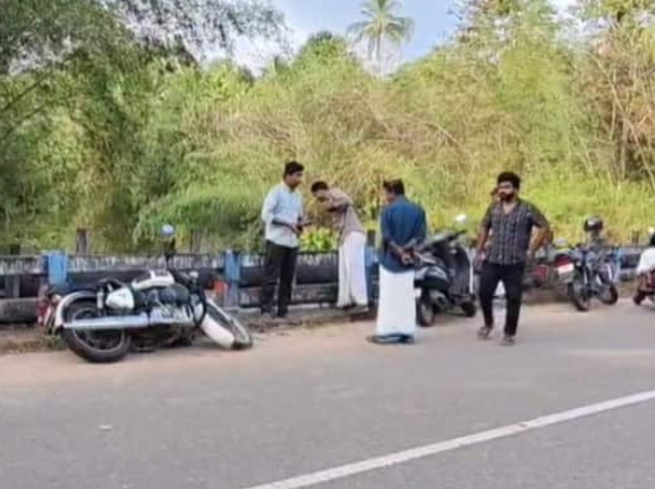 തെരുവുനായ കുറുകെ ചാടി ബുള്ളറ്റ് ബൈക്ക് തെറിച്ച് പുഴയിൽ വീണ യാത്രികന്….