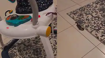 അങ്ങനെ ഒരു പാമ്പിനെയാണ് കുഞ്ഞിന്റെ ബൗൺസി ചെയറിന് താഴെയായി കണ്ടത്. വീഡിയോ ഇൻസ്റ്റ​ഗ്രാമിൽ പോസ്റ്റ് ചെയ്തിരിക്കുന്നത് snakehunteraus എന്ന യൂസറാണ്. . അച്ഛനും അമ്മയുമാണ് കുട്ടിയുടെ ബൗൺസറിനടിയിൽ പാമ്പിനെ കണ്ടത്. രാത്രി വൈകിയിരുന്നു. പിന്നീട്, അത് പാമ്പ് തന്നെയാണെന്ന് ഉറപ്പിച്ചപ്പോൾ അവർ പാമ്പിനെ പിടികൂടുന്നവരെ വിളിക്കുകയായിരുന്നു.